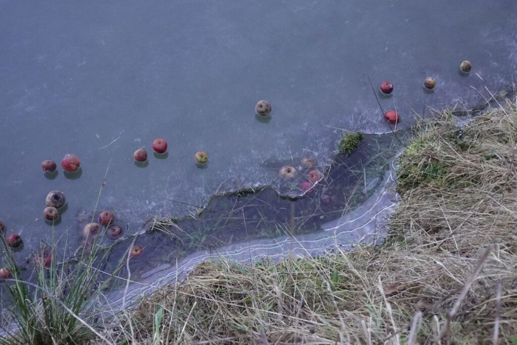 She walks or takes the bicycle and thus decelerates her errands. By limiting herself to what is close at hand, she gives more importance to small details. She finds trees felled by beavers and traces of bird claws in the snow. She walks the same paths again and again. In doing so, she takes pleasure in the changes that nature brings with it.